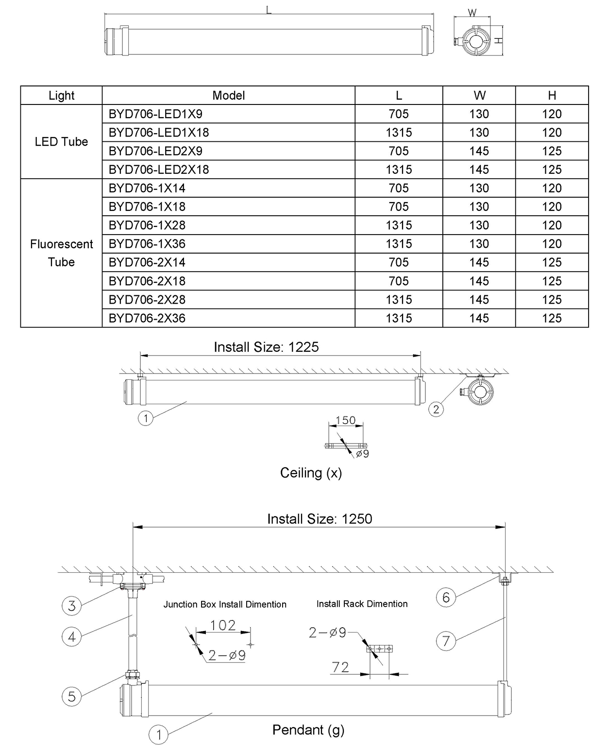 LED Tube: 1X9W, 2X9W, 1X18W, 2X18W